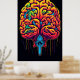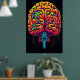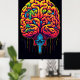Un colorido cerebro psicodélico en la oscuridad, al estilo de ilustraciones caricaturizados, hiper-detalle realista, ilustraciones simples, coloridos, anatomía humana, ilustraciones psicológicos, líneas audaces, colores brillantes.