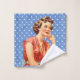 Ilustración ilustrada linda mujer en 1960 con un fondo colorido en azul.
