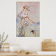 Hermosa y vintage Hada sentada en una margarita blanca. La pequeña abeja vuela a su alrededor buscando néctar de las flores. Hay varios tamaños para elegir y encajar en la decoración. La imagen se puede dimensionar de forma que se ajuste a la mayoría de los tamaños de poster.