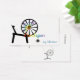 Una adorable araña cuelga de una rueda giratoria en este exclusivo diseño de tarjetas de negocios de artes de fibra. Diseñada para el artista de hilado de fibra, esta tarjeta de visita funciona como una etiqueta de identificación de hilados para adjuntar a productos acabados. Fácil de personalizar y un toque profesional perfecto para todos sus proyectos. Obra artística original y diseño de Night Owl's Menagerie, 2011.