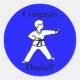 Creado para requisitos particulares para nuestro cliente, usted puede pedir a estos pegatinas de los artes marciales con su selección de nuestras muchas figuras de Karate Kid, colores de fondo, color del pelo, color espeso de la correa (mostrado aquí con la correa negra) y texto tal como un cumpleaños conocido o feliz.