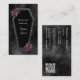 Oscuro y hermoso, esta tarjeta de visita para tatuajes de ataúd tiene el ambiente gótico perfecto. El ataúd tiene un brillo purpurina gris alrededor de los bordes y rosas púrpura con hojas doradas y verdes grises. El fondo es una acuarela negra morena. Añade tus detalles para una tarjeta única y destacada que las personas recordarán. Vea la coordinación de artículos en nuestra tienda, Enchanted Finch.