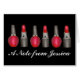 El diseño de la tarjeta de felicitación presenta un ilustracion original de una fila de tubos de pintalabios rojos y botellas de esmalte de uñas. Sólo personaliza con tu información un tutelar único. ¿No ves exactamente lo que buscas? Contacte con Rebecca para tener un producto personalizado sólo para usted!