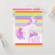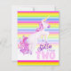 Invitaciones para el 2º cumpleaños, con una pintada de acuarela de unicornio y coloridas rayas arcoiris. Personaliza con tus propios detalles de tu fiesta de cumpleaños, dice Stella cumple dos años. Se acabó. Dibujo único, pintura acuarela y diseño gráfico por Sarah Trett www.sarahtrett.com para www.mylittleeden.com