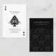 Plantilla adaptable de la tarjeta de visita como el naipe con la fila más alta de la cubierta - el as de espadas. Diseño blanco y negro con el ilustracion del estilo del vintage y modelo elegante del damasco en la parte posterior. Personalícela con su propio Info o haga clic el "personalizar él" si usted necesita cambiar el diseño, los colores o el tamaño de la tarjeta.