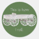 Esta diversión, así es como rollo, pegatinas, presentan mi dibujo de un vagón rústico. El vagón está pintado en tonos grises y marrones. El texto también está escrito en gris y se puede personalizar con el texto. El fondo mostrado es verde y también se puede personalizar. Gracias por comprar CherylsArt en Zazzle.