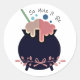 Un caldero colorido con burbujas rosa, azul y turquesa. Terminado con un adorable arco rosado bonito. El texto "So Mote It Be" puede ser personalizado. El fondo de los pegatinas es blanco. Artesanía, regalos de cumpleaños, ortografía, papel de bruja para sellar un hechizo.