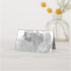 Moderna acuarela abstracta salpicada de color gris invierno boda plegada acompañamiento tarjeta de lugar con una pintura acuarela pintada a mano salpicada con textura en tonos grises, árboles en blanco con nieve, copos de nieve y texto en blanco.