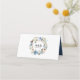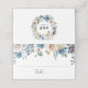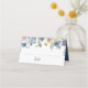 Elegante tarjeta boda floral de lugar/número de mesa con un borde superior de flores color agua blanco, beige y azul con hojas verdes diseñadas para coordinarse con nuestra colección de bodas de Belleza Floreciente. Añade tus iniciales y fecha de boda a la parte posterior de las tarjetas de lugar para que tengan un aspecto personalizado.