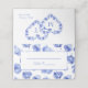 Este diseño combina perfectamente con todos los demás elementos de la colección Blue Hydrangea boda. Este diseño cuenta con un espacio en la parte delantera para un nombre y un número de mesa, rodeado de pétalos florales de hidrangea azul. En la parte posterior, puede personalizar con sus iniciales, nombres y fecha de boda.