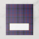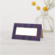 Elegante tarjeta de lugar plegado de enlucido en el clásico patrón de enlucido tartán del clan Dundonald azul regencia, rojo, negro y amarillo. En la recepción, cada cliente puede personalizar a mano un espacio de texto blanco con bordes dorados.