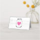 Cartas de boda plegadas de textura blanca para la recepción rústica. Cartas de lugar plegadas en blanco con diseño de tarro de moda de campo. Ideal para fiestas de bodas de granero o jardín. El diseño del logo del tarro de vidrio del corazón desvanecido en la imagen de fondo de madera.