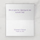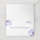 El elegante diseño Violets presenta la imagen de un bonito ramo de violetas delgadas que se exhiben en dos esquinas del frente. El número de la tabla y el nombre del invitado aparecen claramente en un texto en inglés antiguo violeta. Adentro contiene su mensaje de personalizable de gratitud en la parte superior, nombres de novia y novio más fecha de boda en la parte inferior. Diseñado como parte de la Suite Boda Católica Violeta Elegante.