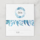 Elegante tarjeta de boda botánico/número de mesa con un spray y una corona de hojas de color azul índigo y verde azulado diseñada para coordinarse con nuestra colección de bodas de las hojas índigo. Añade tus iniciales y fecha de boda a la parte posterior de las tarjetas de lugar para que tengan un aspecto personalizado.