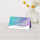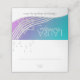 Tarjeta de carpa mitzvah con tema musical en tonos azules y morados y rosa y plata para complementar nuestras invitaciones.