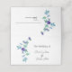 Anémonas púrpuras para un nombre y un número de tabla para el titular del lugar. Texto e imágenes en ambos lados.