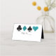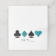 Perfecto para un glamoroso y brillante boda del casino de Las Vegas, esta tarjeta blanca plegada presenta un falso purpurina verde azulado con trajes de tarjeta negra, un espacio preimpreso para escribir en números de mesa y un espacio blanco en blanco para escribir en los nombres de sus invitados. ¿Su abastecedor necesita saber la elección de cada comida de los huéspedes? Edite este diseño para añadir un respaldo de color único a cada tipo de comida o utilice un pegatina para indicar quién recibe qué tipo de comida. Estas tarjetas se venden en paquetes de 25, así que no olvides pedir lo suficiente para cada lugar.