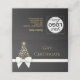 Lujoso y rico diseño vacacional con una espléndida silueta de árbol de Navidad con copos de nieve dorados. Decorada con un arco de oro blanco sobre una exuberante antropía de fondo gris oscuro negro oscuro. Este certificado de regalo es perfecto para su pequeña empresa o para regalar a amigos y familiares.