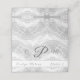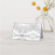El frente de diseño presenta un fondo blanco de imitación satinado para el monograma de la pareja recién casada. El nombre del invitado y el número de la tabla se muestran a continuación en una franja blanca. Adentro hay un mensaje especial de gratitud para los invitados. Muy elegante. Diseñado para coordinar con la elegante suite Boda Faux-Satin.