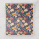 Estas tarjetas de boda de otoño cuentan con flores de color bonito, incluyendo rosas, dahlias y mariposas. La tarjeta de la habitación incluye un ramo florido de otoño encima de un lugar donde escribir el nombre y el número de la mesa del cliente. En la parte posterior, un marco floral circular rodea el nombre de la pareja y la fecha boda. La parte inferior de la tarjeta de boda tiene un fondo azul marino y un patrón floral de bonito.