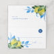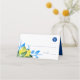 Las tarjetas de la plaza boda toscana con el diseño de la elección de la comida presentan una frontera de mi acuarela original pintada de limones en amarillo vibrante con botánicos azules y verdes. Espacio disponible para el nombre de la persona, número de la mesa y elección de la comida inicial: v) vegano, c) pollo, b) carne o g) sin gluten. Las tarjetas se revierten para revelar nombres de novias y novios coincidentes y fecha de boda. El interior presenta un color azul sólido de cortesía. Diseñado para coincidir con el tema del Boda italiano Do Tell a Belle. Perfecto para bodas toscanos y mediterráneos de destino. Para ver la decoración de la mesa del boda de limón a juego visita www.zazzle.com/dotellabelle Arte y diseño de Victoria Grigaliunas