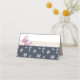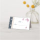 Tarjeta de lugar floral azul marino romántico y mariposas rosas
