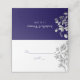 Agregue un toque de elegancia a su recepción con esta tarjeta de lugar de boda azul real. Adornada con delicados acentos florales plateados y tipografía refinada, es el detalle perfecto para guiar a sus invitados a sus asientos mientras mejora el ambiente de su elegante boda de invierno.