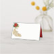 Esta tarjeta plegada se muestra en un color rojo y blanco con una flor festiva de poinsettia roja y una huella de pavo real dorado. Personalizar este artículo o compra tal cual.