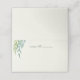 Una simple cascada de ramas verdes y azules y frondosas acentúan esta tarjeta de lugar de invitados en blanco de marfil. Un espacio en blanco para escribir en el nombre y la asignación de mesa de cada invitado facilita que el huésped encuentre su asiento. La tipografía elegante y fácil de personalizar es moda y sencilla, con amplio espacio para añadir nombres caligráficos como invitados.