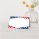 Esta tarjeta plegada se muestra en blanco con una impresión de estrellas rojas, blancas y azules del 4 de julio. Personalizar este artículo o compra tal cual. Imagen de stock freepik.com