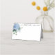 Esta tarjeta de lugar de nombre doblado se muestra en blanco básico con un acento floral azul horangea adorable y tiene nombres personalizados de ejemplo. Personalizar este elemento y cambia los nombres y la fecha a lo que necesita con esta plantilla.