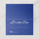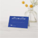 Esta tarjeta de lugar de nombre plegado se muestra en blanco básico con un color de fondo azul zafiro, mostrado con un acento de desplazamiento brillante de diamante. Consejo: Utilice una pluma de gel blanco o una pluma de gel metálico. Personalizar este artículo o compra como se muestra. Imagen con licencia