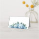 Agregue un nombre o un número de tabla a estos encantadores portaobjetos de nombres plegados de hidrangea azul de color de agua para las tablas de bodas o eventos. Estas flores están dispuestas en un diseño de madera con delicadas hojas verdes que las acentúan. Busque espacio para añadir un nombre o información a estas tarjetas para que se adapten a su estilo.