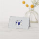 tarjeta de lugar gris de flores blancas azules reales