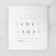 Añada un toque celestial a su recepción nupcial con nuestras Minimalistas tarjetas plegadas de la Colección Celeste Zodiac. Estas elegantes tarjetas de presentación tienen un fondo blanco adornado con las cinco fases de la luna en un hermoso tono azul, añadiendo un encanto celeste a los ambientes de la mesa. Las líneas para el nombre y el número de la tabla también están en el mismo color azul, creando un aspecto coherente y elegante. Además de las fases de la luna, la parte trasera de cada tarjeta de lugar muestra de nuevo las fases de la luna, junto con los nombres de la pareja y la fecha del boda. Esta personalización aporta un toque especial a las tarjetas de visita y sirve como un bonito toque de queda para los huéspedes. Perfecto para las parejas encantadas por la belleza del cielo nocturno, la astrología o los temas místicos, estas tarjetas de lugar complementarán una variedad de estilos y temas bodas. El diseño celeste le da un toque mágico a la recepción, creando un ambiente encantador para sus huéspedes. Guíe a sus huéspedes con estilo y elegancia con nuestras Minimalistas tarjetas plegadas de la colección celeste de la luna. Deje que la belleza del cosmos ilumine su recepción y cree un ambiente inolvidable para su día especial.