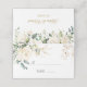 Elegante carta de lugar con un ilustracion de rosas blancas, vegetación y florido dorado al estilo acuático.