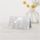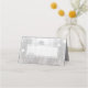 Tarjeta de lugar plegado con temática invernal realizada en un tono plateado brillante con un área de texto blanco rodeada de copos de nieve blancos. Personaliza a mano cada tarjeta para tu recepción de bodas.