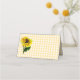 Moda de campo doblada tarjeta de lugar hecho en un patrón de gingham amarillo y blanco, con arte vintage de un girasol, en la parte delantera. Personalice el texto del personalizado, en la parte posterior de la tarjeta para leer lo que desee. Personaliza la parte delantera de cada tarjeta, a mano, para tu recepción de bodas.