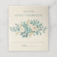 Esta verde azulada y crema tarjeta floral combina perfectamente con nuestra Colección Floral Formal, con los nombres de la pareja y la fecha de boda junto con el nombre y el número de la mesa de sus huéspedes