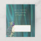 Elegante tarjeta de lugar plegado hecho en verde azulado satén con detalles decorativos de oro floreciente y un pavo real morado y verde azulado bonito. Personalice el texto del personalizado, en la parte posterior de la tarjeta para leer lo que desee. Personaliza la parte delantera de cada tarjeta, a mano, para tu recepción de bodas.
