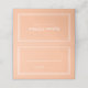 Las tarjetas de lugar para invitados a la boda, simples, minimalistas y elegantes, presentan un diseño moderno con un borde doble en blanco crujiente sobre un fondo de melocotón de moda. El diseño moderno es simple y fresco. Personalice los detalles de la boda para sus invitados con letra elegante y caligrafía. La parte posterior de la tarjeta presenta un diseño coincidente personalizado con el nombre de la novia y el novio. La tarjeta se completa maravillosamente con blanco crujiente en el interior para un aspecto elegante y discreto.