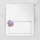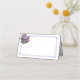 Esta tarjeta de nombre doblado se muestra en blanco básico con un hermoso ramo de flores de lila y un clásico marco de borde de color lavanda polvoriento.