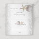 Perlas y estrellas de encaje blanco y diseño de playa vintage en dólares de arena. Tarjetas de matrimonio en la playa para complementar nuestras invitaciones con un suave diseño de arpillera gris y de encaje.