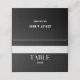 La elegante y sencilla tarjeta del lugar de la boda se puede personalizar fácilmente con un número de tabla, sus nombres y la fecha del evento. Los nombres de los invitados se pueden escribir a mano en la tarjeta.