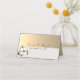 Sencillo y moderno guión de caligrafía, elegante, elegante, minimalista tarjeta de lugar de boda dorado, con nombre y número de tabla.