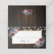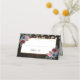 Elegante tarjeta azul marino, borgoña y rosa de mesa floral o tarjeta de lugar con esquinas florales de flores azules, borgoñas y rosas que enmarcan el nombre de la persona y el número de la mesa.