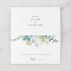 Esta tarjeta dorada floral de vegetación tropical boda es perfecta para una boda de destino. El diseño se basa principalmente en una vegetación acuarela pintada a mano y flores doradas. Personaliza la tarjeta de la parte trasera del lugar con los nombres de la novia y del novio y la fecha.