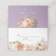 Asista a sus huéspedes con estilo con esta tarjeta de boda color melocotón y morado. Con elegantes rosas acuáticos, pasto de pampas y un suave fondo de lavanda, este diseño rústico-boho le da un toque romántico a la mesa. Personalice con nombres, fechas o números de tabla para que coincidan con el tema de su boda.