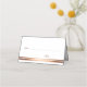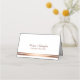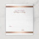 Una elegante tarjeta de visita rosa de oro/cobre embellecida con boda blanco simple en la que figuran los nombres de la novia y del novio en la parte trasera, junto con la fecha de su boda.