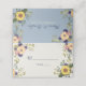 Elegante, moderno, boho, rústico, botánico, polvoriento boda azul con nombre y número de mesa, flores acuarelas, girasoles y vegetación.